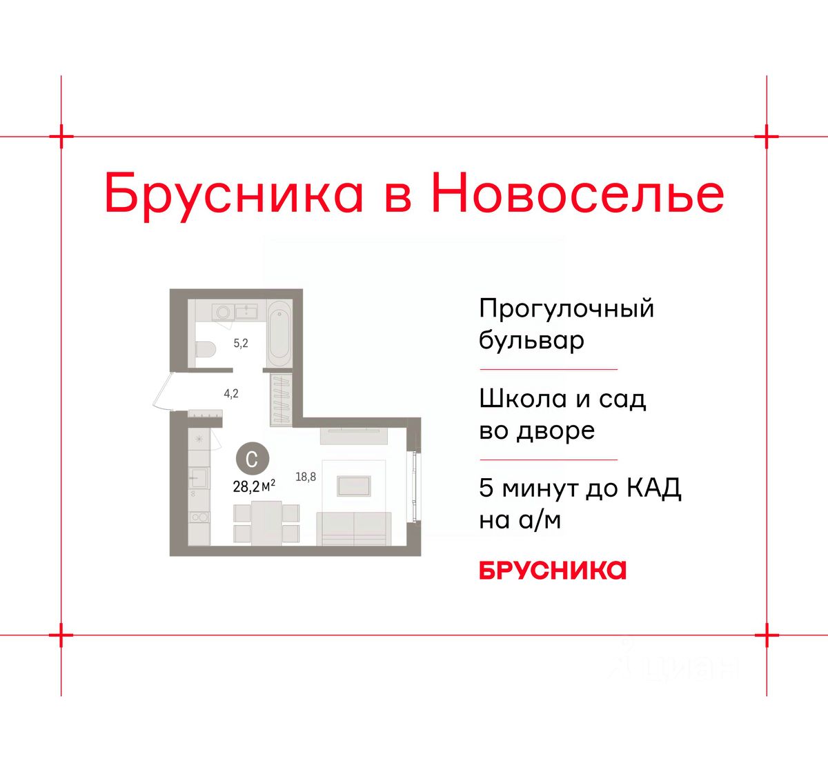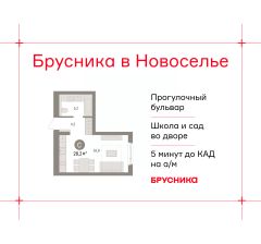 Продается 1-комн. квартира-студия от застройщика с предчистовой отделкой в ЖК "Брусника в Новоселье" на 4 этаже. Общая площадь: 28.21 кв.м., площадь гостиной 18.8 кв.м., из которых 5 кв.м. выделено под кухонную зону. Все окна выходят на одну сторону. В квартире один совмещенный санузел. Высота потолков 2.7 м.