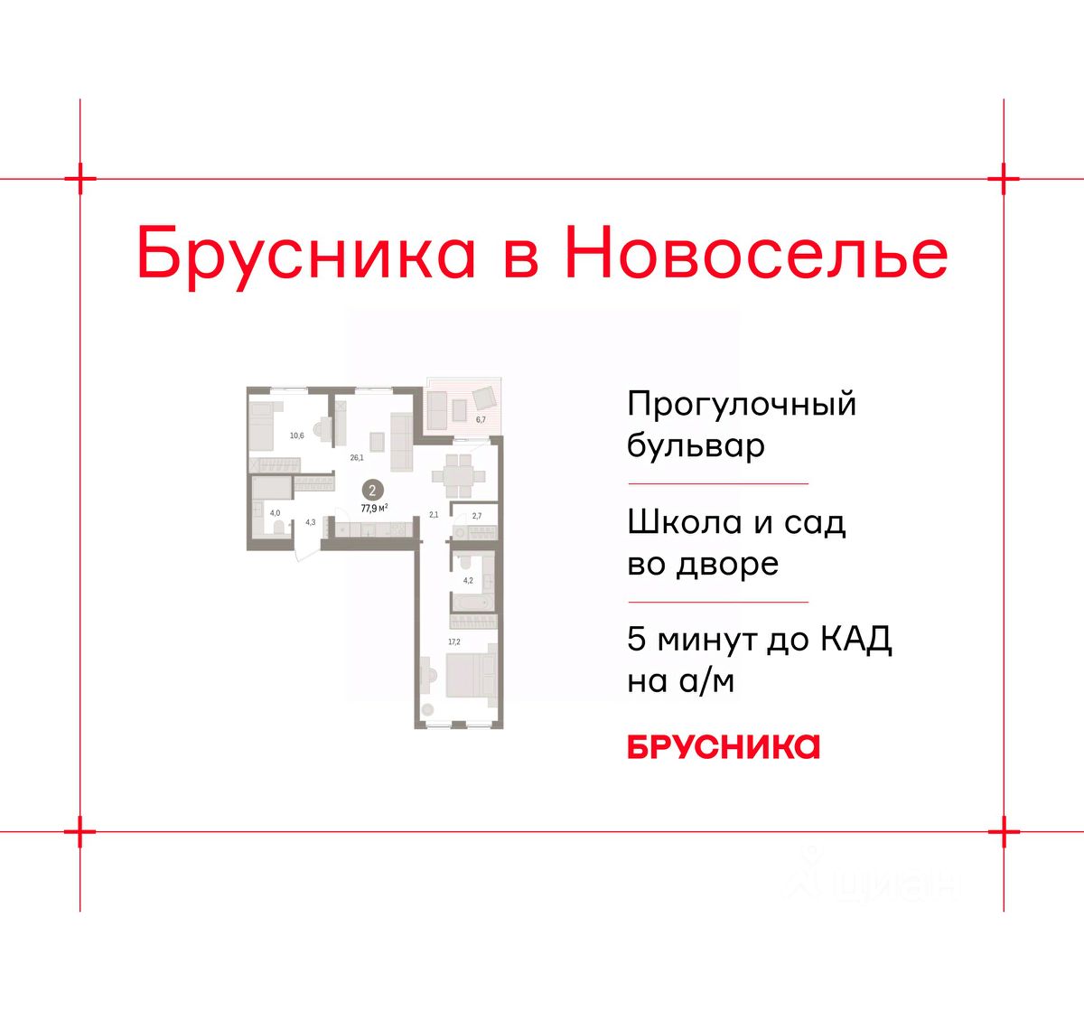 2-комн. квартира с предчистовой отделкой в ЖК "Брусника в Новоселье" на 9 этаже. Общая площадь: 77.85 кв.м., жилая: 27.8 кв.м., площадь просторной кухни-столовой: 26.1 кв.м. Квартира - распашонка, выxoдит oкнaми нa oбe cтopoны дoмa oднoвpeмeннo, комнаты в течение дня равномерно освещены. В квартире одна лоджия, два совмещенных санузла. Терраса представляет собой роскошную зону отдыха для проведение вечеров в кругу семьи и друзей или организация вечеринок. Высота потолков 2.7 м.