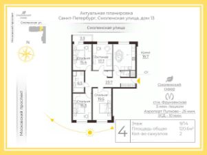 Простор 120,6 м² + лоджия 3,3 м². На этаже всего 3 квартиры.