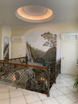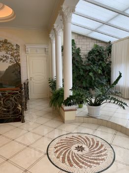 На полу паркет ручной работы, в холле мрамор, потолки лепнина ручной работы. Лестница выполнена из дуба, кованные перила. Лестница играет ключевую, солирующую роль в квартире, объединяя все комнаты, этажи в единый ансамбль. На двух уровнях приточно-вытяжная вентиляция. В спальнях кондиционеры. Газовый котел фирмы итальянской фирмы Baxi от которого идет отопление и горячая вода, сами регулируете температуру в квартире. Вы не зависите от города. Все преимущества как в собственном доме. При этом низкая квартплата, потому что вы не платите за отопление и горячую воду, а платите за газ. Водяные теплые полы на 2-м уроне в с/у и зимнем саду. Техника Mile, сантехника Villeroy&Boch.