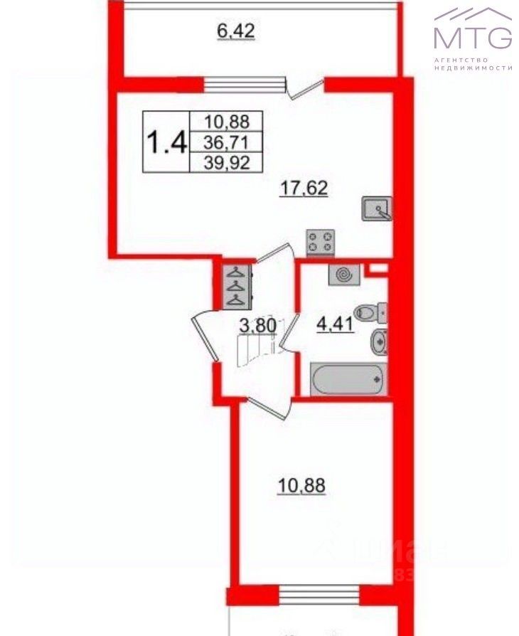 Большая кухня-гостиная 17,62 кв м с выходом на просторную застекленную лоджию 6,42 кв м