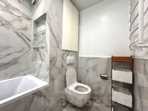 Совмещенный санузел с качественной сантехникой, установлен унитаз с инсталляцией, стеклянная ширма.