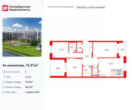 Уникальная, функциональная европланировка, большая кухня-гостиная 18.13 м², вместительная прихожая 10.67 м². Общая площадь квартиры - 76.97 м², жилая 38.23 м², высота потолка 2.77 м.