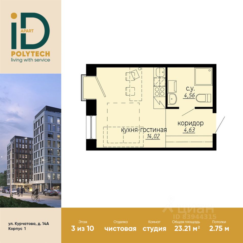 В продаже стильная эргономичная студия с готовой отделкой в эксклюзивном апарт-комплексе iD Polytech. 10-этажный дом расположен в шаговой доступности от станции метро "Политехническая" и престижного научно-образовательного кластера Политехнического университета Петра Великого. Дорога до Петроградской стороны с ее ресторанами, барами и креативными пространствами, как и до исторического центра, займет не больше 20 минут. Удобные выезды на ЗСД и КАД позволят свободно и быстро доехать до крупнейших моллов, аэропорта и живописного пригорода - Пушкино, Петергофа, Кронштадт, Зеленогорск. iD Polytech - идеальный вариант как для постоянного проживания, так и для временного размещения и сдачи в аренду туристам. Завершение строительства запланировано на 2 квартал 2026 года.
