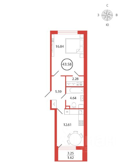 Продаётся 1 комнатная квартира в жилищном комплексе "Энфилд" (корпус Дом 19 секция 7). Общая площадь 43.58 кв. м, площадь комнат 16.84 кв.м. совмещенный санузел. Квартира расположена на 2 этаже 12 этажного дома.Корпус сдан.
