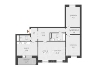 Продается просторная трехкомнатная квартира площадью 97.3 кв. м на 11 этаже 19-этажного дома, построенного в 2010 году. Высота потолков составляет 2.5 метра. Квартира находится в районе Проспект Ветеранов, что всего в 14 минутах езды на автомобиле от метро.