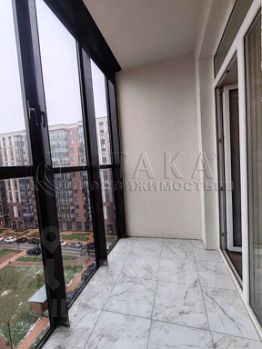 Отделка "Stone" (входит в стоимость): Элегантный стиль с элементами под мрамор. Обои под окраску, в прихожей и кухонной зоне — керамогранит с тёплым полом. Балкон отделан керамогранитом.