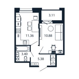 Прямая продажа от застройщика! Готовая Евро-двушка 30.5 кв.м с кухней 11.36 кв.м с предчистовой отделкой на 10 этаже в сданном ЖК "Полис Новоселье".