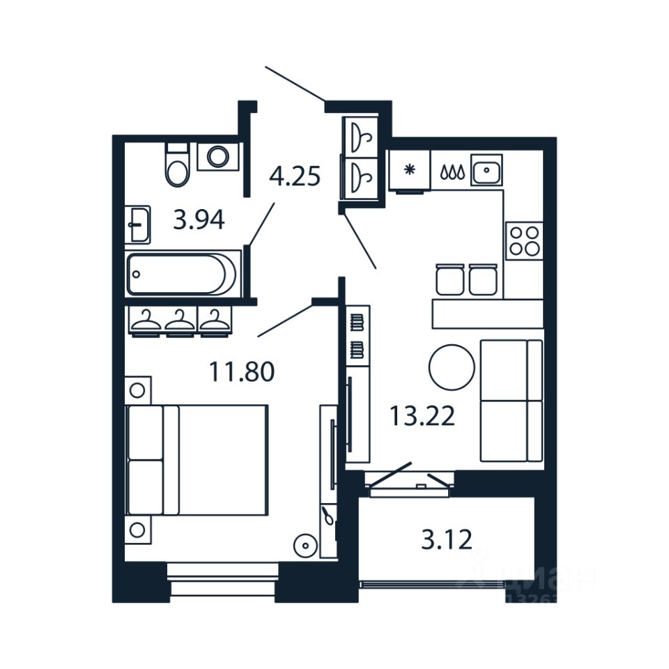 Прямая продажа от застройщика! Готовая Евро-двушка 32.6 кв.м с кухней 13.22 кв.м с чистовой отделкой на 12 этаже в сданном ЖК "Полис Новоселье".
