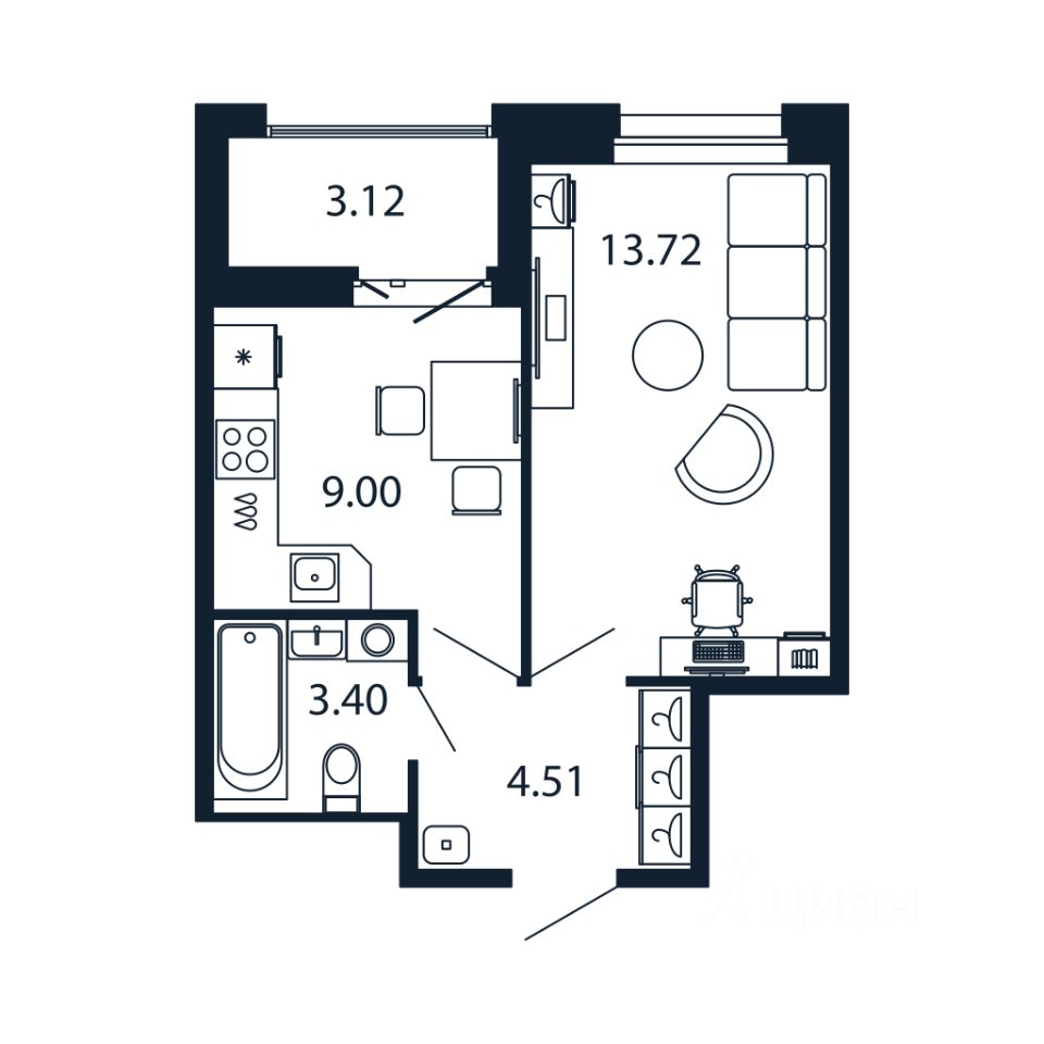 Прямая продажа от застройщика! Готовая Однокомнатная квартира 30.3 кв.м с кухней 9 кв.м с предчистовой отделкой на 6 этаже в сданном ЖК "Полис Новоселье".