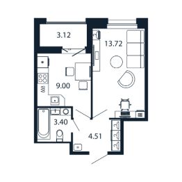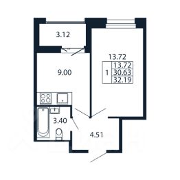 Прямая продажа от застройщика! Готовая Однокомнатная квартира 30.4 кв.м с кухней 9 кв.м с предчистовой отделкой на 7 этаже в сданном ЖК "Полис Новоселье".