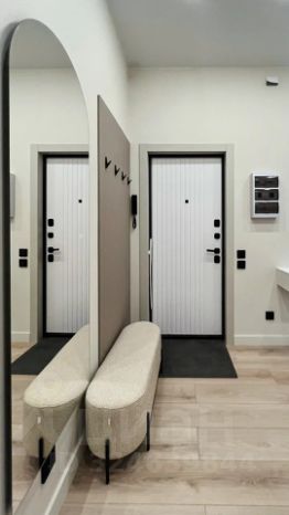 Квартира продаётся с новой мебелью и техникой: два телевизора, встроенный холодильник, духовой шкаф, индукционная панель, ПММ, вытяжка, стиральная машина, гардеробные системы, кровать с подъемным механизмом, раскладной диван, столы и стулья. Покупателю не нужно тратиться на закупку и установку — заезжаете и живёте.