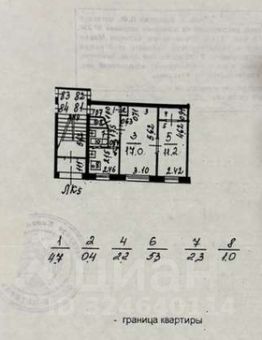 Общая площадь квартиры 44,1 кв.м, кухня 5,3 кв.м, комнаты 17,0 / 11,2 кв.м, коридор 4,7 кв.м.