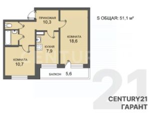 Просторная прихожая и коридор 10,3м² и кухня 8м²
