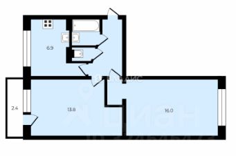 - Общая площадь: 44,5 кв. м