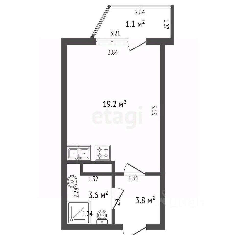 Продается просторная студия 28.1 кв.м