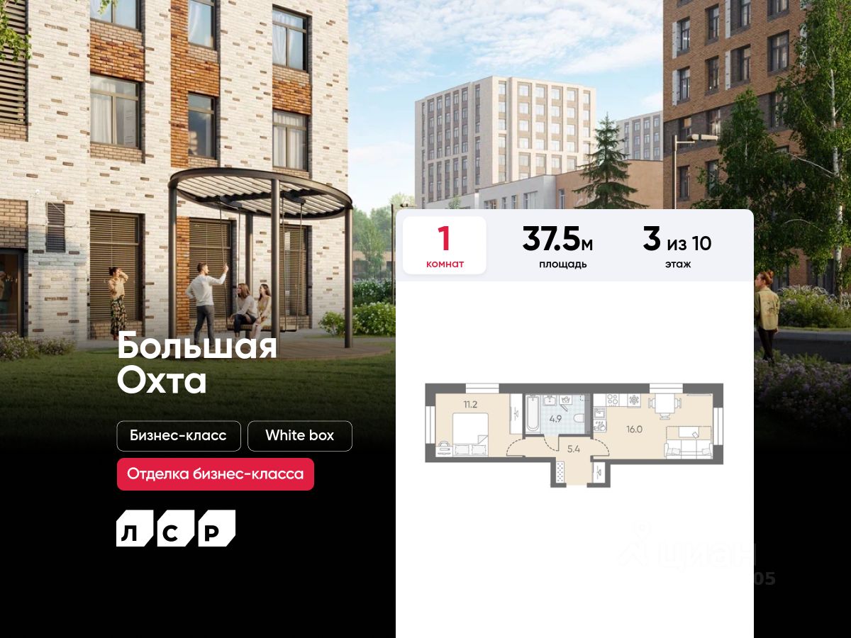 Продаётся 1-комнатная квартира в ЖК "Большая Охта" на 3 этаже. Общая площадь составляет 37.50 кв. м. Квартира с white box отделкой. Жилой комплекс "Большая Охта" располагается по адресу Санкт-Петербург, Красногвардейский.