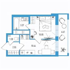 Продаётся 1-комнатная квартира в строящемся доме (Дом 1), срок сдачи: II-кв. 2027, общей площадью 29.69 кв.м., на 6 этаже.