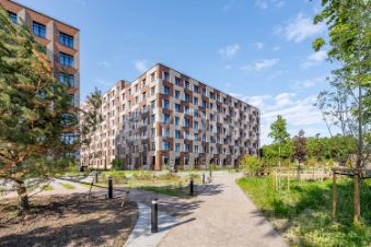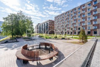 Видовая перспектива со стороны кухни-гостиной открывается на восток и выходит на прилегающие зелёные, ухоженные придомовые территории с высокими деревьями, детскими площадками, а также на соседствующее с домом историческое малоэтажное здание цвета пыльной розы. Противоположная часть квартиры ориентирована на закрытый ухоженный внутренний двор с современными зелёными посадками, вечерней подсветкой и аккуратными тропинками. Квартира очень тихая, так как её окна не выходят на оживленные дороги или магистрали. Здание третьего корпуса отделено от Петровского проспекта огромной территорией, на которой расположено современное здание школы с впечатляющими спортивными площадками и бассейнами.