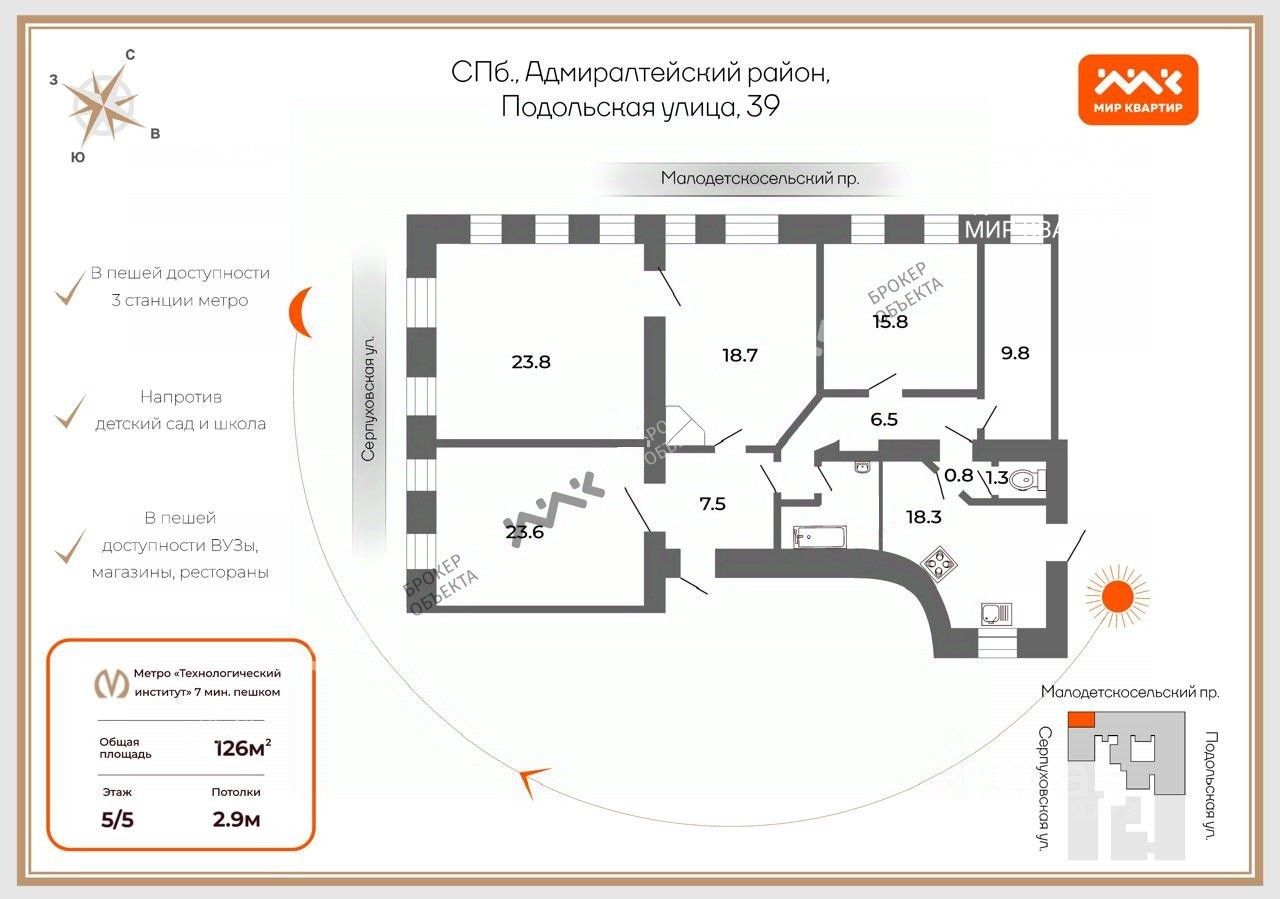 Арт. 127150670 Просторная, светлая, функциональная квартира в исторической части Адмиралтейского района в пешей доступности от метро.