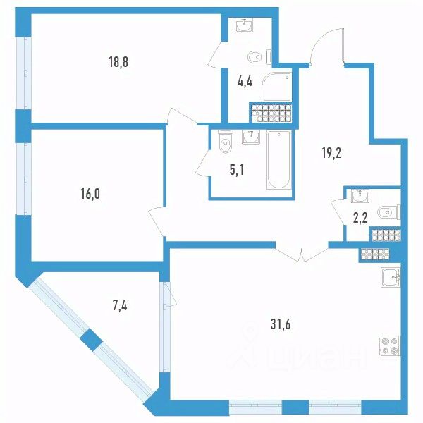 Продаётся 2-комнатная квартира в строящемся доме (Секции 15 и 16), срок сдачи: II-кв. 2026, общей площадью 101 кв.м., на 13 этаже.