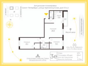 Планировка: две просторные светлые спальни и большая объединённая кухня-гостиная с современной отделкой и удобной мебелью.