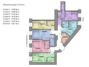 - санузел и кухонная зона в каждой студии;