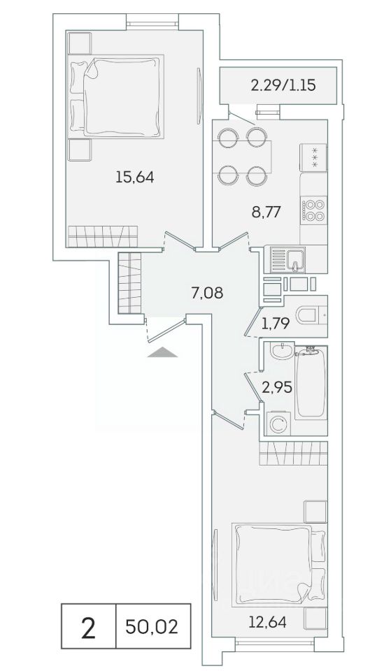 В продаже от застройщика 2 комнатная квартира 48.7 кв. м с черновой отделкой и практичной планировкой для удобной организации пространства. Корпус сдан, идет выдача ключей.