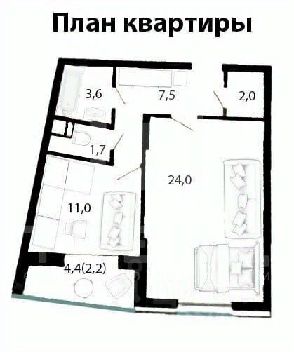 - Раздельный санузел (3,6 и 2 кв.м.)