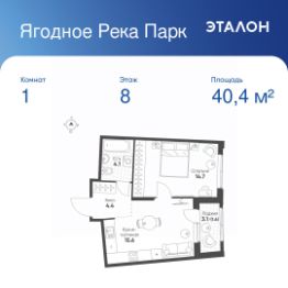 Общая площадь квартиры — 40.4 кв. м, этаж 8 из 9.