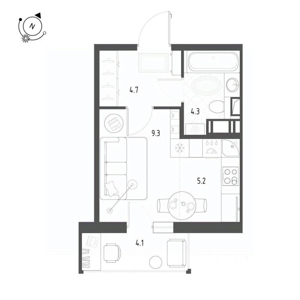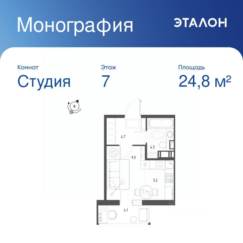 Общая площадь квартиры — 24.8 кв. м, этаж 7 из 12.
