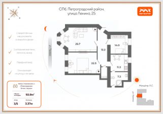 Функционал, удовлетворяет требованиям, пожалуй, самого популярного запроса: 3 отдельные спальни.