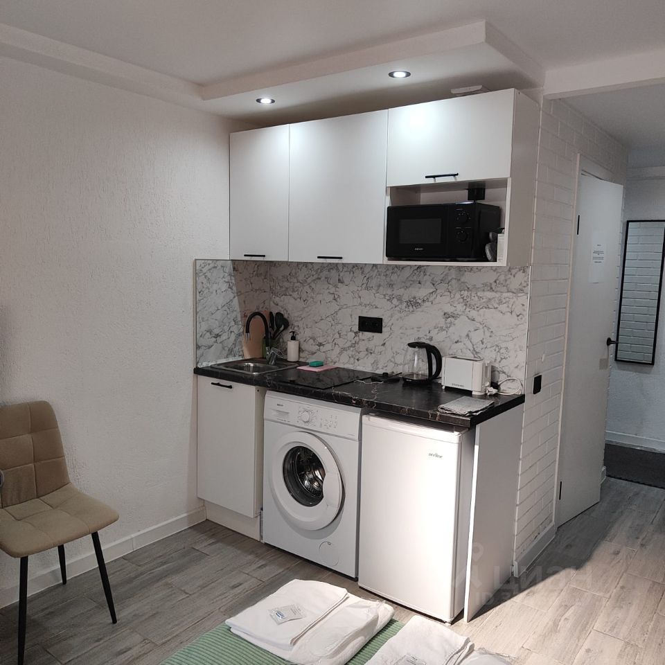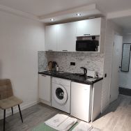 Квартира с современным евроремонтом, в который входят качественные материалы и стильный дизайн. Пространство студии организовано максимально функционально, что позволяет удобно разместить мебель и технику. Совмещенный санузел выполнен в светлых тонах и оснащен всей необходимой сантехникой.