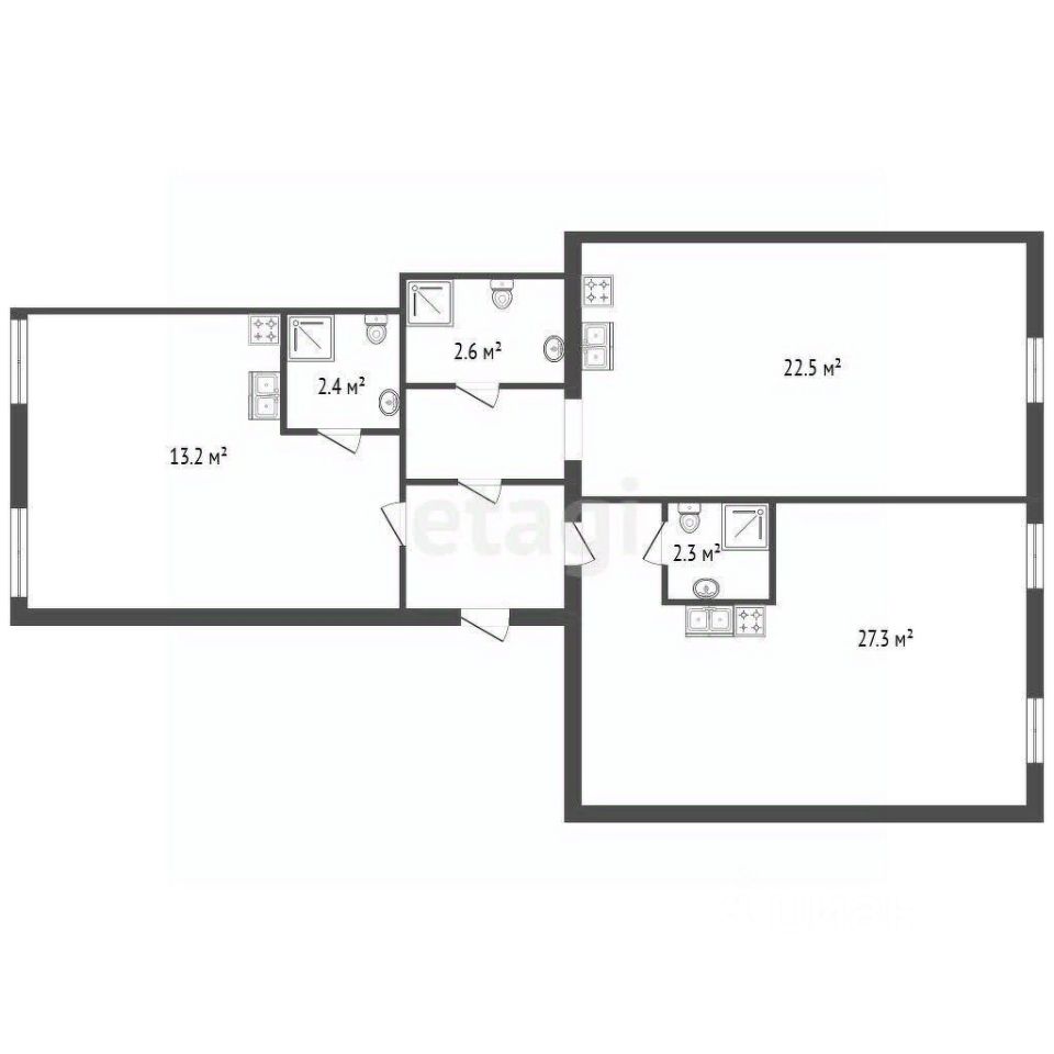 Объект представляет собой три полностью изолированные студии площадью 27,3 м², 22,5 м² и 13 м², каждая из которых оборудована собственным санузлом, кухонной зоной, системой хранения и рабочим местом.