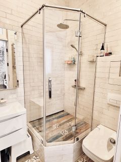 Собственником произведен современный качественный ремонт, с заменой полов, электрики и всех коммуникации. Просторная кухня гостиная (44м2) с новой мебелью, располагает к комфортному семейному отдыху. Окно спальни (18м2) выходит в тихий двор. Новому собственнику остается практически вся мебель и бытовая техника.