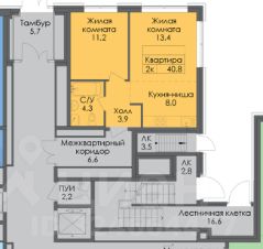 Предлагаю вашему вниманию двухкомнатную квартиру 40.8м² формата евро в современном жилом комплексе Лермонтовский 54.