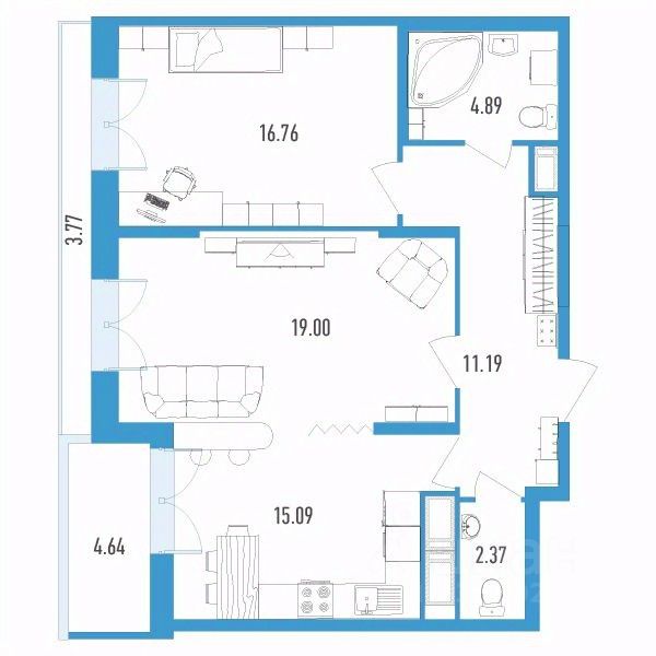 Продаётся 2-комнатная квартира в сданном доме (Головнина, 3к1), срок сдачи: II-кв. 2023, общей площадью 72.4 кв.м., на 7 этаже.