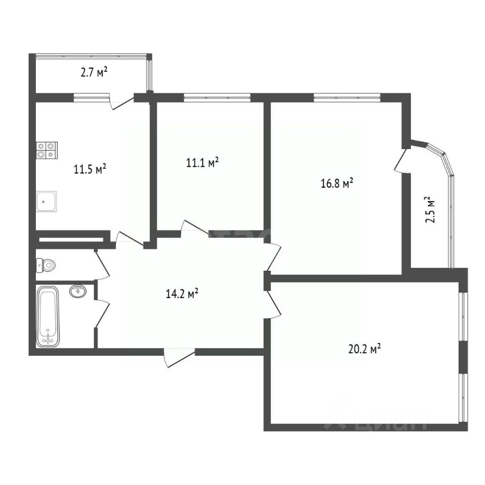 * Застекленных 2 балкона - 2,7 м2, 2,5 м2.;