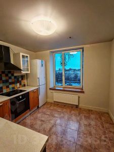 Кухня большая, квадратная, на кухне и в ванной тёплый пол. Все стены идеально выровняны, потолки - натяжные.