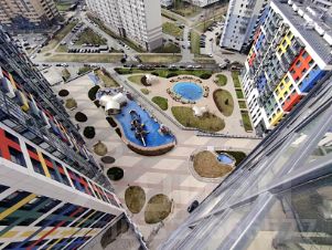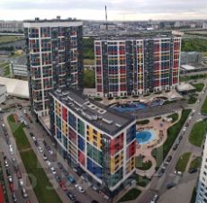 Дом на закрытой территории с круглосуточной охраной, консьерж и детскими игровыми площадками для детей разного возраста. В доме магазины, рестораны, супермаркеты, салоны красоты, много модных мест, обучающие клубы . В каждой парадной и на этажах общественные кладовки для хранения мелкого инвентаря.
