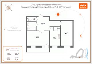 Удобная планировка с изолированными комнатами (17,1+16 м2 )
