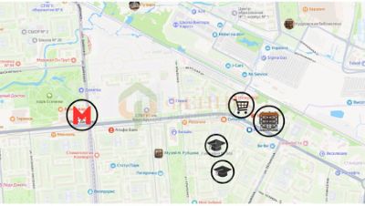 Рядом с домом расположены детские сады 123 и 64 Невского района, а также детский сад 5 комбинированного вида. Также в шаговой доступности находится Norway Park, школа современных видов спорта InMotion, парк им. Есенина и несколько супермаркетов, включая Магнит и сеть супермаркетов Перекрёсток.