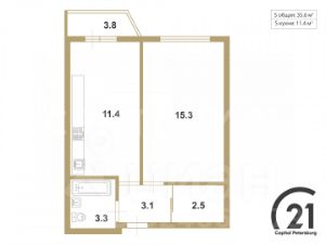 В продаже светлая 1-комнатная квартира в кирпично-монолитном доме