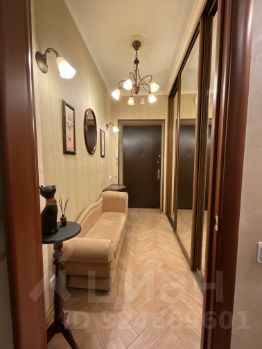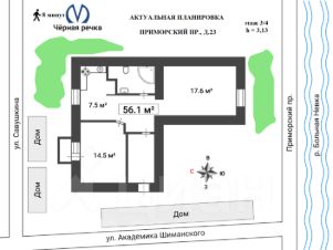 Общая площадь без балкона 56,1м кв, жилая без шкафов 14,5+17,6, кухня 7,5, совмещенный санузел с ванной ~ 4,8. Потолки 3,13м. Грамотная перепланировка с вместительными местами хранения - в прихожей и спальне большие встроенные шкафы-купе. Мебель и техника остаются.