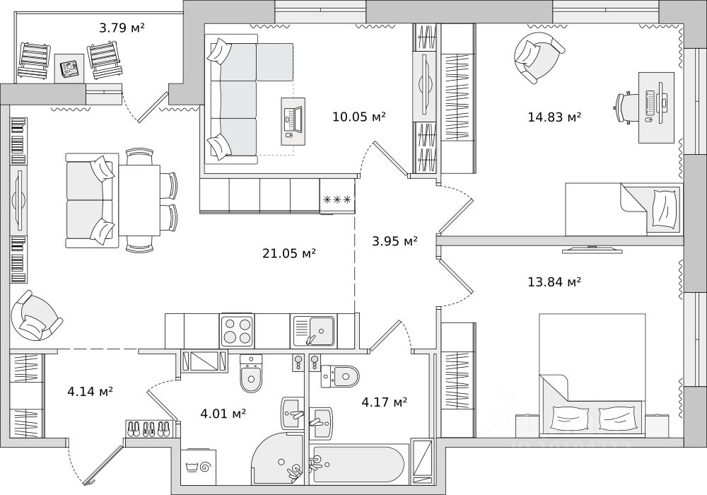 При покупке квартиры без участия агентов дарим сертификат новосела в магазин HOFF на сумму 50 000 рублей. Им можно оплатить не более 15% от суммы покупки.