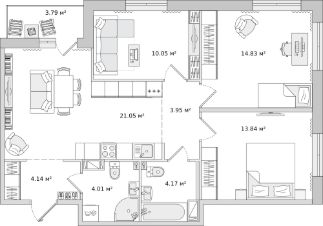 Продаётся трёхкомнатная квартира в жилом комплексе ЦДС "Чёрная Речка", Корпус 7Номер квартиры — 1229.