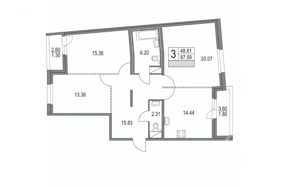 Санузел раздельный.