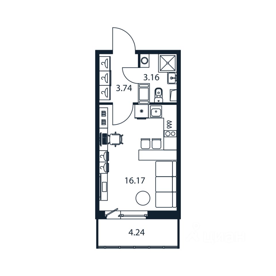 Прямая продажа от застройщика! Готовая Студия 22.6 кв.м с чистовой отделкой на 12 этаже в сданном ЖК "Полис Лаврики".