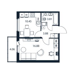 Прямая продажа от застройщика! Готовая Однокомнатная квартира 34.5 кв.м с кухней 10.45 кв.м с чистовой отделкой на 5 этаже в сданном ЖК "Полис Лаврики".