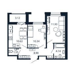 Прямая продажа от застройщика! Готовая Двухкомнатная квартира 46.6 кв.м с кухней 10.63 кв.м с чистовой отделкой на 12 этаже в сданном ЖК "Полис Новоселье".